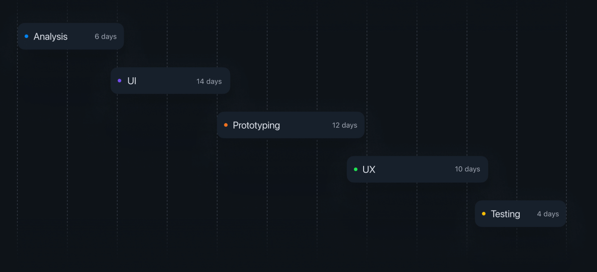 The development of a mobile application consists of many stages, First we conduct analytics, then UX, then we create prototypes, draw designs and test